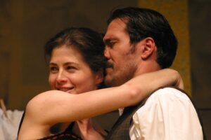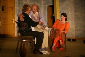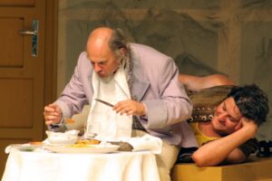 „Mirandolina arra van, hogy beleszeressenek” – mondja az egyik reménytelen szerelmes, a nő pedig így fakad ki: „Azért ez förtelmes, hogy minden férfival azt csinálok, amit akarok.” És tényleg… szerelmes férfiak röpködnek a fogadóban, mint lepkék a gyertyaláng körül. Egyetlen kivétel van csupán…